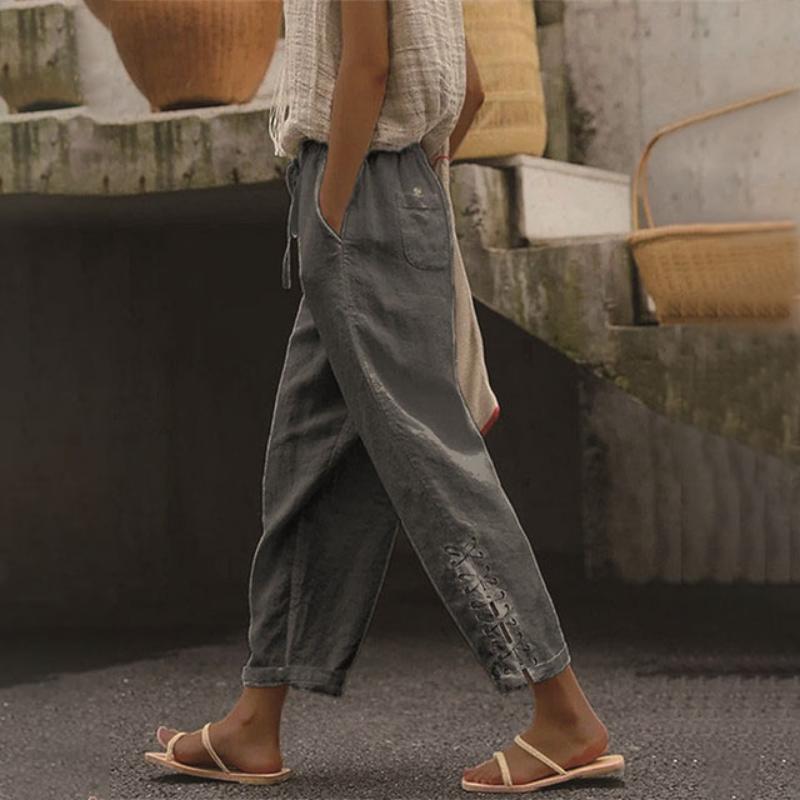 【100 % Bomull】Blommiga Broderade Casual Byxor